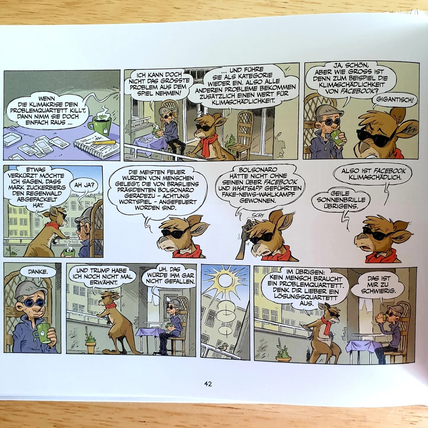 Die kurzen Geschichten bringen dabei in wenigen Bildern perfekt die Essenz des zeitgenössischen, dunklen Humors von Marc Uwe Kling aufs Papier. Die Geschichten an sich sind dabei abwechslungsreich und nehmen kein Blatt vor den Mund. Sie veranschaulichen humoristisch die Probleme unserer Politik und Gesellschaft. Dabei sind Marc Uwe und das Känguru wie immer unfassbar sympathisch und humorvoll.